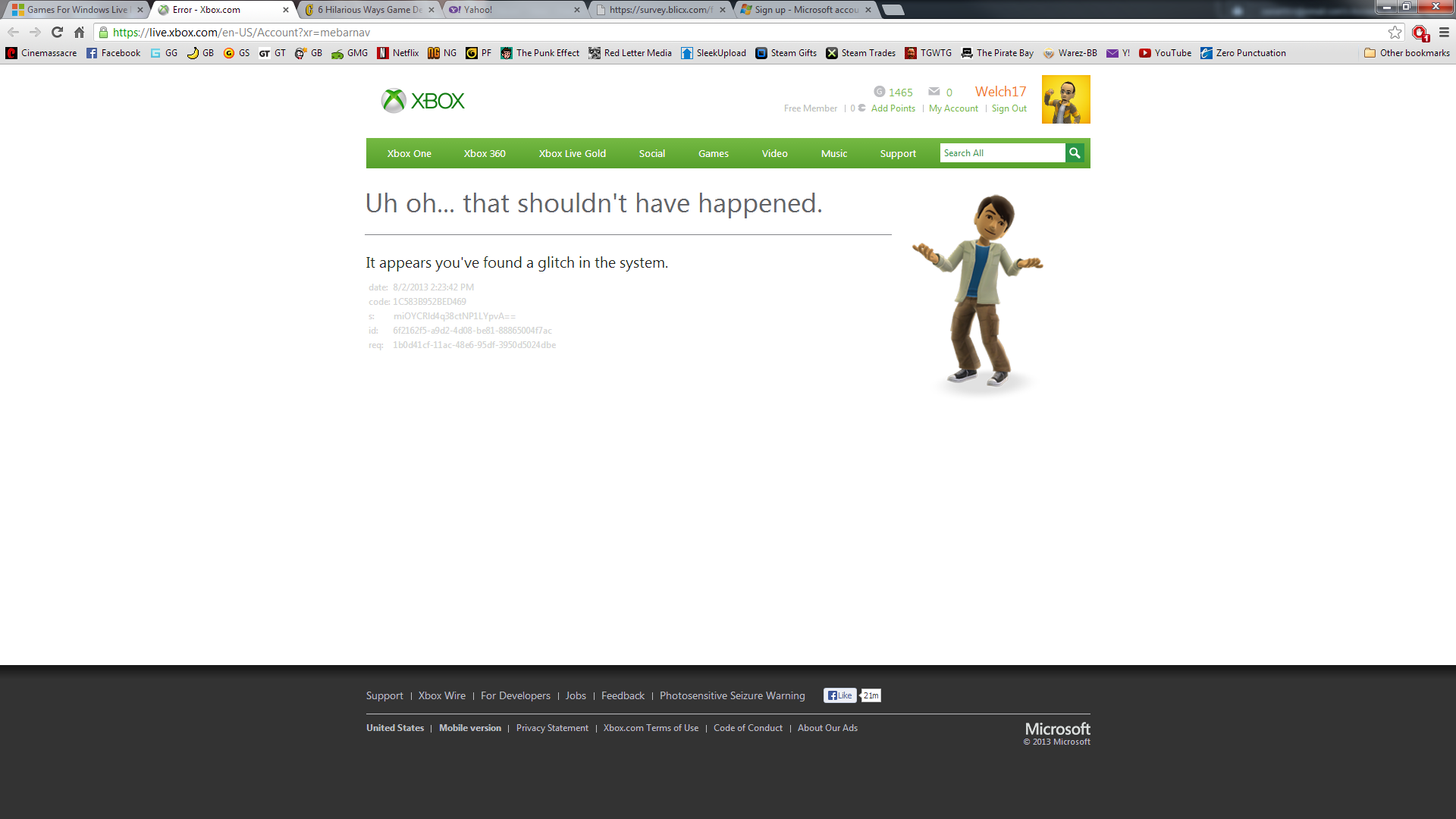 Another thing, on the Xbox.com home page, when I click on "My Account," it takes me to an error page, as shown below.